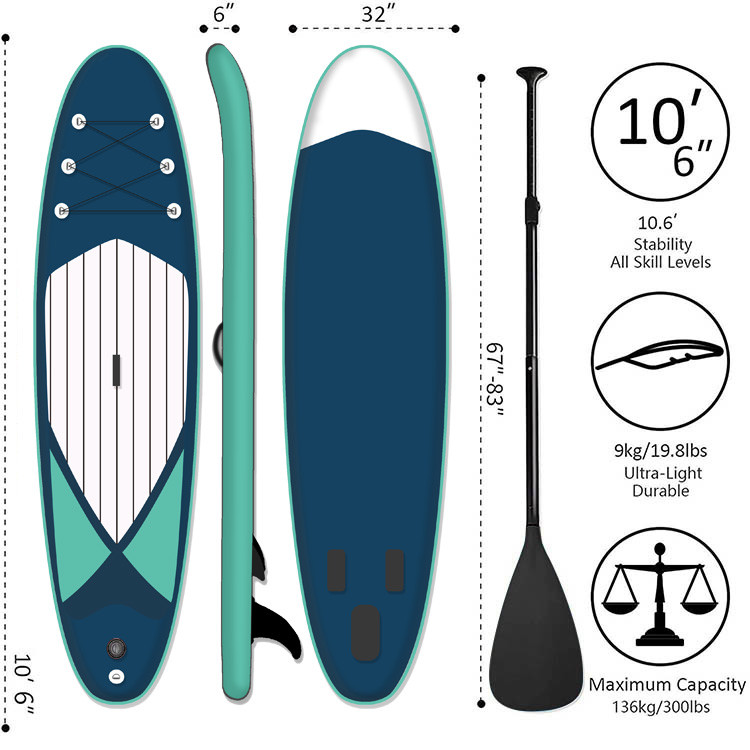 | เน้น | Inflatable Surfboard Sup Board,Stand Up Paddle Board 10'6''x32''x6'',ความแข็งแกร่งที่เหนือชั้น Touring Sup Board |