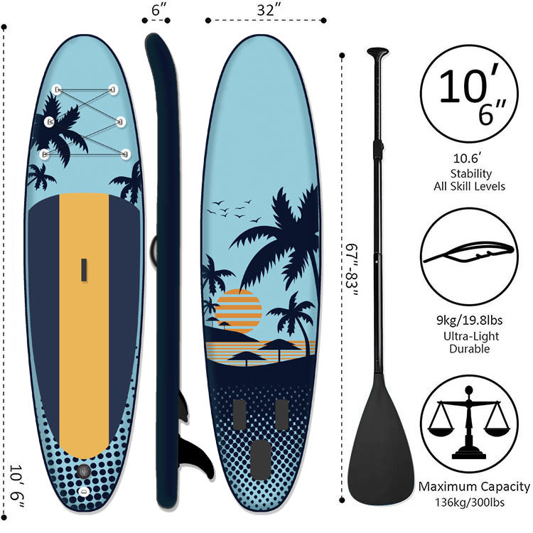 - [เป่าลมและพกพา]Huarui กระดานพายแบบยืนพองพองสามารถพับเก็บได้ในกระเป๋าเดินทางน้ำหนักโดยรวมเพียง 18.5LBS คุณสามารถพกพากระดานพายพองได้ทุกที่ทุกเวลาสามารถพองได้อย่างรวดเร็ว (11-15PSI) หรือกิ่ว ติดตั้งง่าย , จัดเก็บและพกพา และเหมาะสำหรับทะเลสาบ แม่น้ำ หรือมหาสมุทร